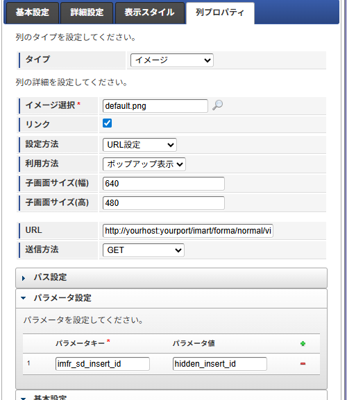 パラメータキー/パラメーター値imfr_sd_insert_id/hidden_insert_id