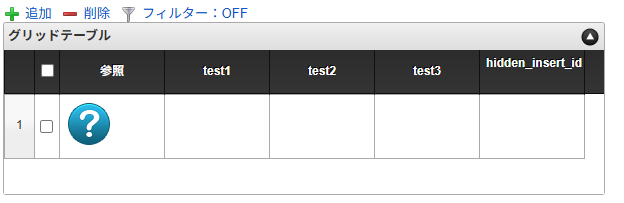 前提条件記載のとおり、遷移先のキー項目としてグリッドテーブルに参照画面遷移先のimfr_sd_insert_idを定義します。