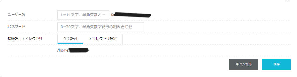 - 任意のユーザ名、パスワード、接続許可ディレクトリを設定します。