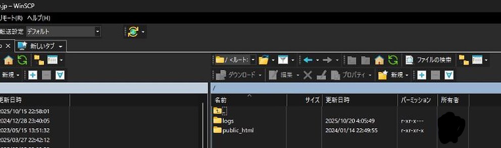 以上で、ログインすると問題なければ、以下のとおりConoHaWINGのレンタルサーバのディレクトリにアクセスできます。