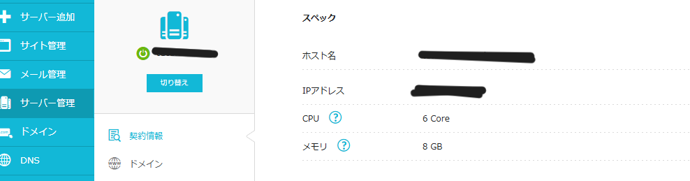 - ホスト名:ConoHaWINGのサーバー管理>契約情報>スペック>ホスト名