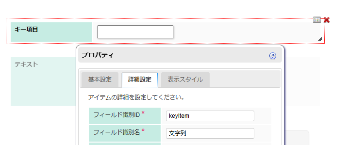 キー項目に対して、以下のとおり設定します。